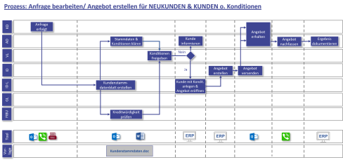 Die Prozesse werden dann immer detaillierter heruntergebrochen, bis zu den einzelnen Software-Tools, Vorlagen und Arbeitsschritten: